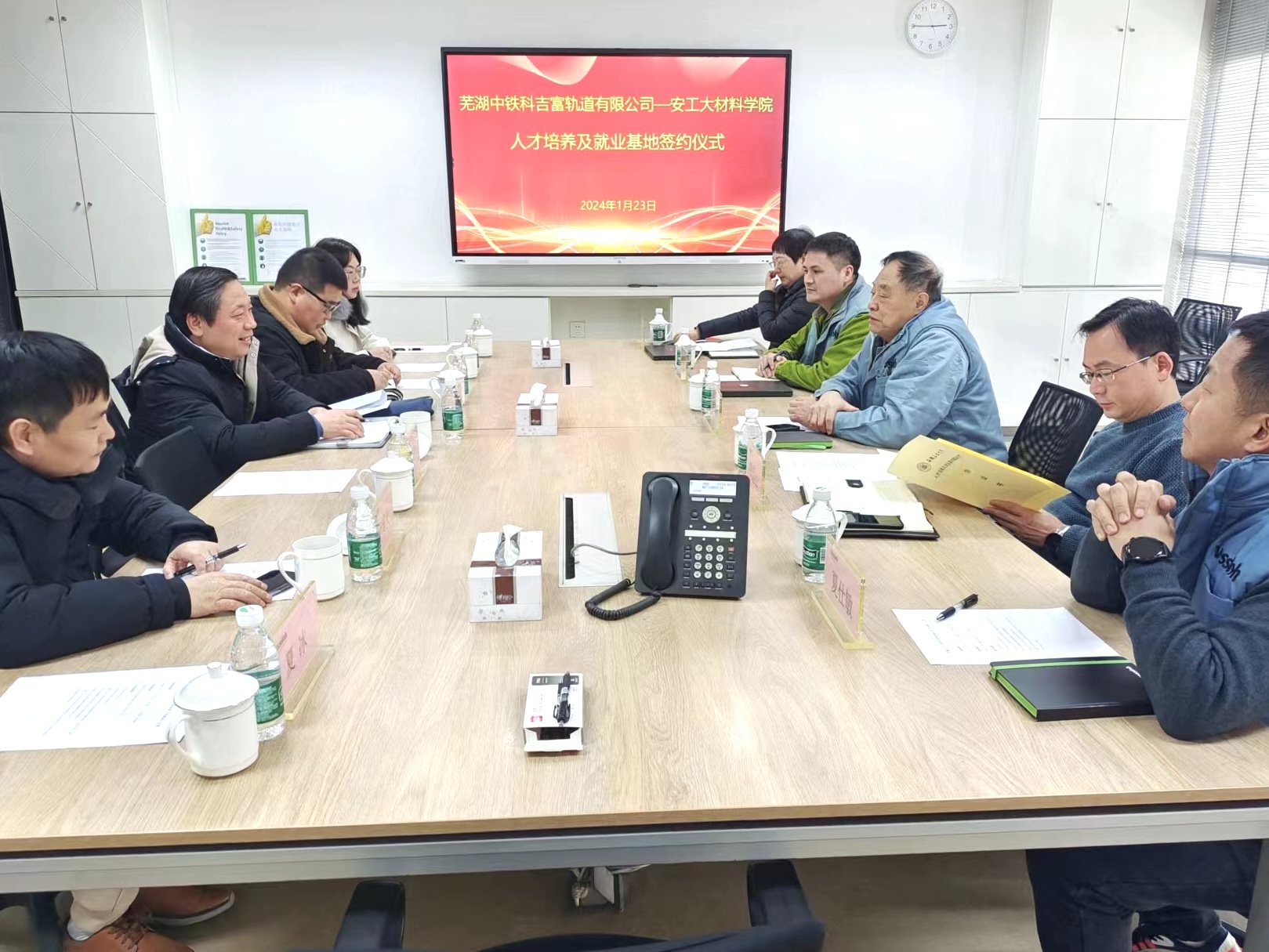 芜湖中铁科吉富轨道有限公司副总经理曹宗石、钱世山以及技术部、人事部、设计部负责同志,芜湖信德热处理有限公司总经理夏其月分别于汪盛颜一行进行了座谈交流。会上,两家企业分别从文化理念、发展历程、建设规模、未来发展方向以及人才需求、技术难题等方面的情况进行了介绍。汪盛颜向两家企业介绍了学校情况,重点介绍了近年来学院在学科专业建设、产学研合作、科技成果转化、人才培养等方面取得的突出成绩。校企双方希望以此次访企拓岗为契机,在人才培养、产学研合作等方面建立常态化交流互动机制。