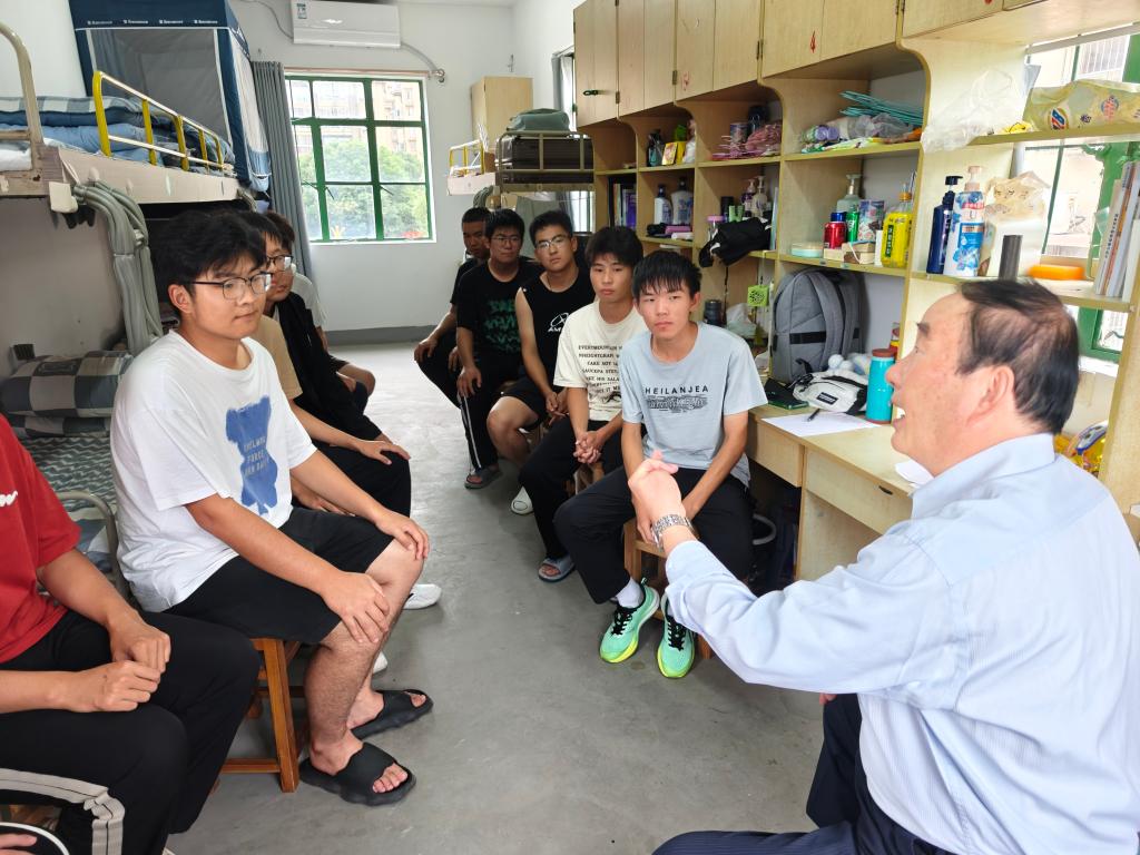 宿舍里,退休老师与同学们促膝而坐,亲切交谈。老教师们细心了解同学们入学以来学习、生活等方面的适应情况,同时,老教师们还结合自己学习经历和从教经验,讲学校、学院、专业发展情况,讲自己教授出来的杰出校友和优秀学长学姐的励志故事,讲专业学习方法。嘱咐学生们一定要珍惜时光、加倍努力,尽快适应大学生活,完成角色转变,培养正确的学习方法、健康的生活方式和优良的人格品质,不断提升自身综合素质,努力做“真材实料”的材料人。