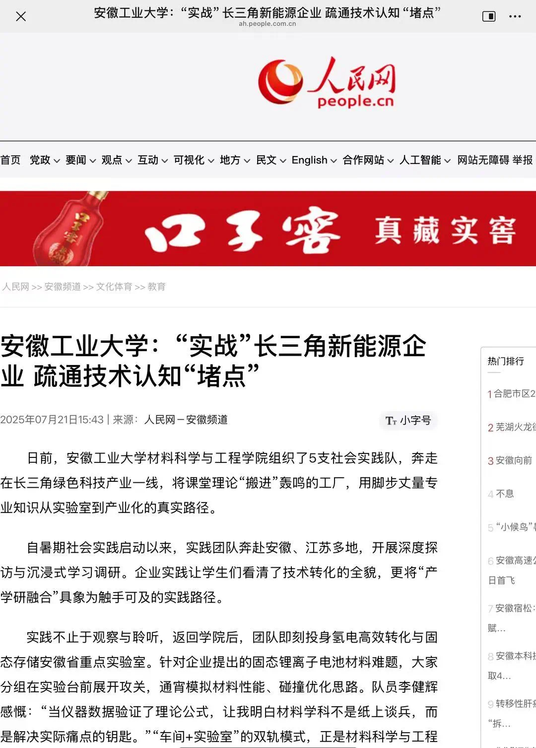 自暑期社会实践启动以来,实践团队奔赴安徽、江苏多地,开展深度探访与沉浸式学习调研。企业实践让学生们看清了技术转化的全貌,更将“产学研融合”具象为触手可及的实践路径。