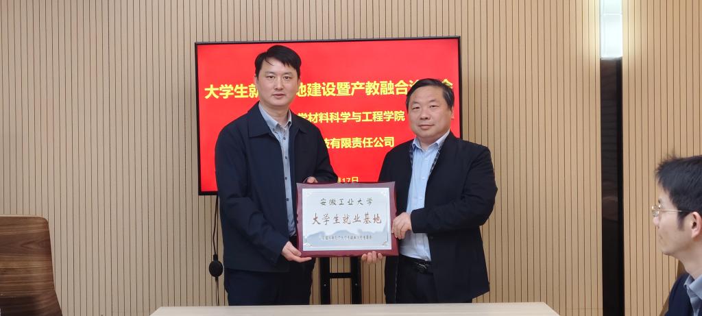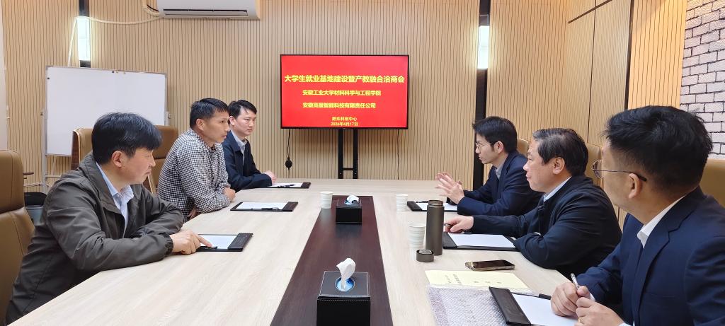 在安徽高量智能科技有限公司,企业执行董事毛光权对汪盛颜、李永涛一行表示热烈欢迎,并详细介绍了公司近年来的发展成就与未来规划。李永涛从历史沿革、办学定位、学科建设、科研平台、人才培养及毕业生升学就业等方面系统介绍了学校及学院的整体情况,重点阐述了学院与安徽高量在产业合作与人才培育上的契合点。双方现场签订了人才培养与就业基地建设合作协议书,并向企业颁授了“安徽工业大学大学生就业基地”铜牌。