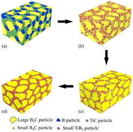 图1B4C‒TiC‒B混合粉体反应烧结制备B4C‒TiB2复相陶瓷的示意图