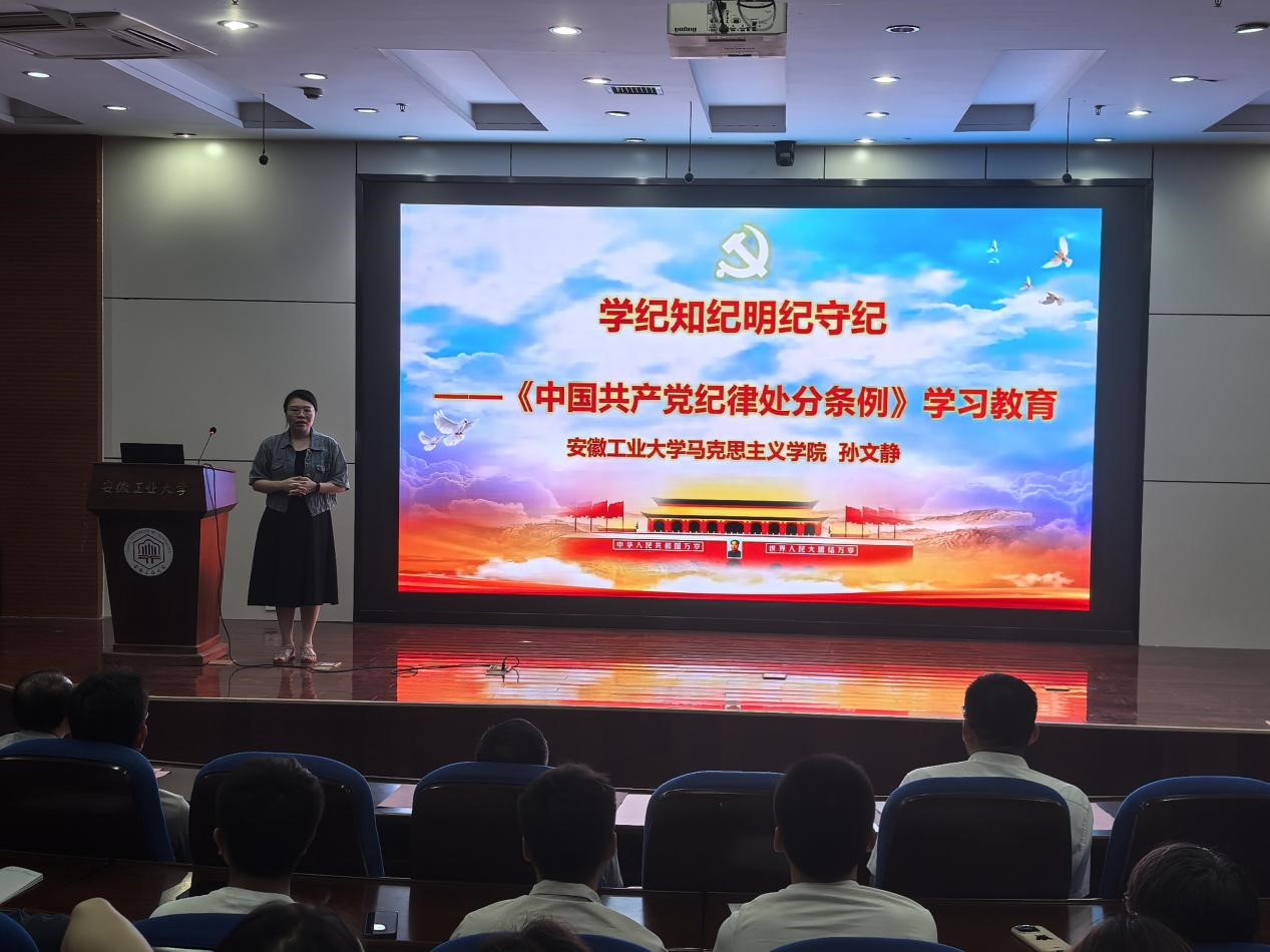 党委特邀校党委讲师团成员、马克思主义学院教师孙文静对《条例》作专题宣讲。宣讲报告会由学院党委书记杨建主持,学院全体教职工党员和学生党员参加了会议。
