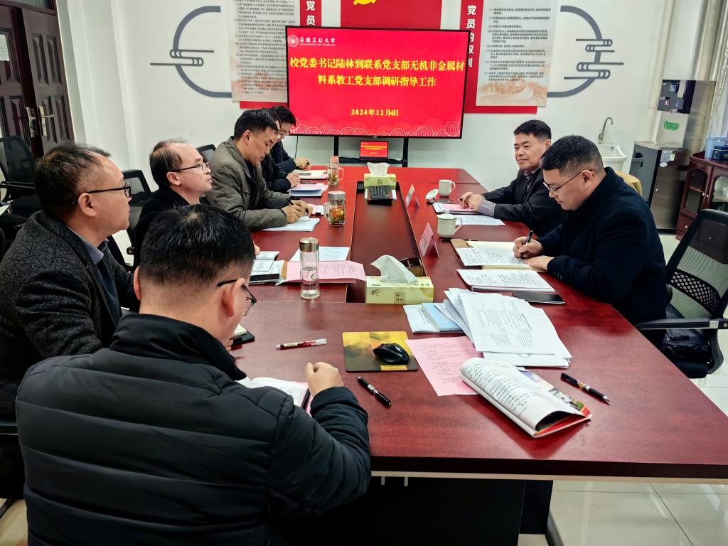 12月4日下午,校党委书记陆林深入韩国三级片 无机非金属材料系教工党支部指导工作。韩国三级片 领导班子,无机非金属材料系教工党支部支委、系主任参加了座谈会。会议由学院党委书记杨建主持。