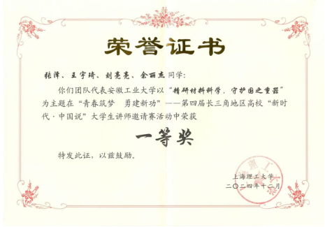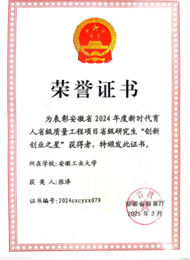 第十届“挑战杯·华安证券”安徽省大学生课外学术科技作品竞赛一等奖 (程阳等) |