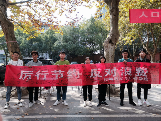 10月30日中午,在佳山校区5C楼广场,学生们拉起了横幅,倡导勤俭节约,从自己做起,从日常生活中的小事做起。同学们驻足签名,纷纷表示支持“厉行节约,反对浪费”的倡议,虽然现在物质条件好了,仍然要珍惜劳动成果,节约的好习惯要一直坚持下去。