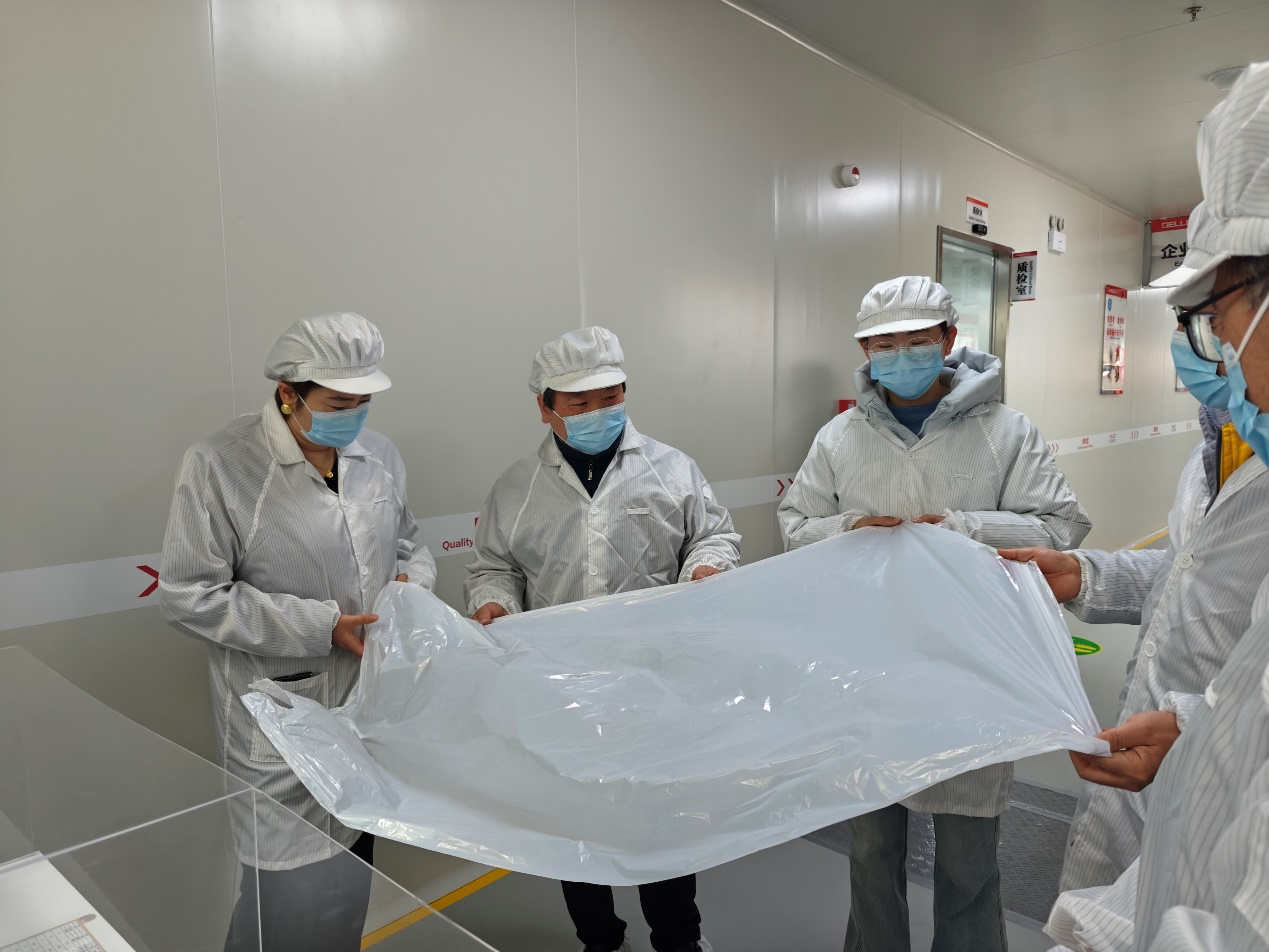 在数字化展示中心,张林健通过三维动态模拟系统,全景式解析了新能源锂电隔膜的核心生产工艺与技术创新路径,重点介绍了公司在超薄隔膜技术领域的突破性进展。柳东明一行还深入智能化生产车间,实地考察了国内领先的湿法隔膜生产线,详细了解企业战略布局、技术研发体系及人才梯队建设情况。
