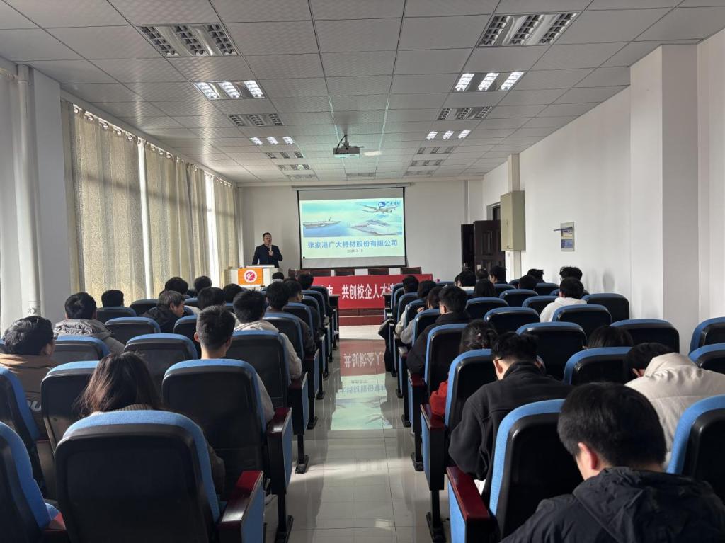 分别邀请中探集团马鞍山冠德公司、张家港广大特材股份有限公司、福耀集团等单位在材料南楼516举办就业创业讲座暨学院化、专业化专场招聘宣讲会。院长柳东明,党委副书记、纪委书记、副院长汪盛颜,毕业班辅导员、2025届求职毕业生参与活动。