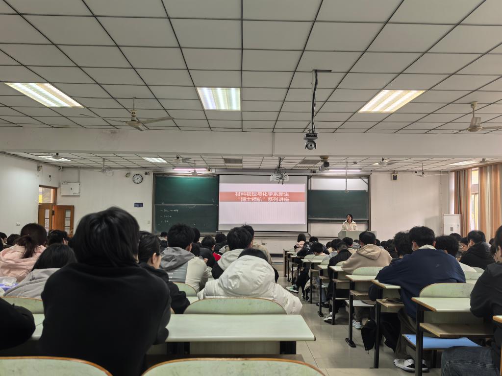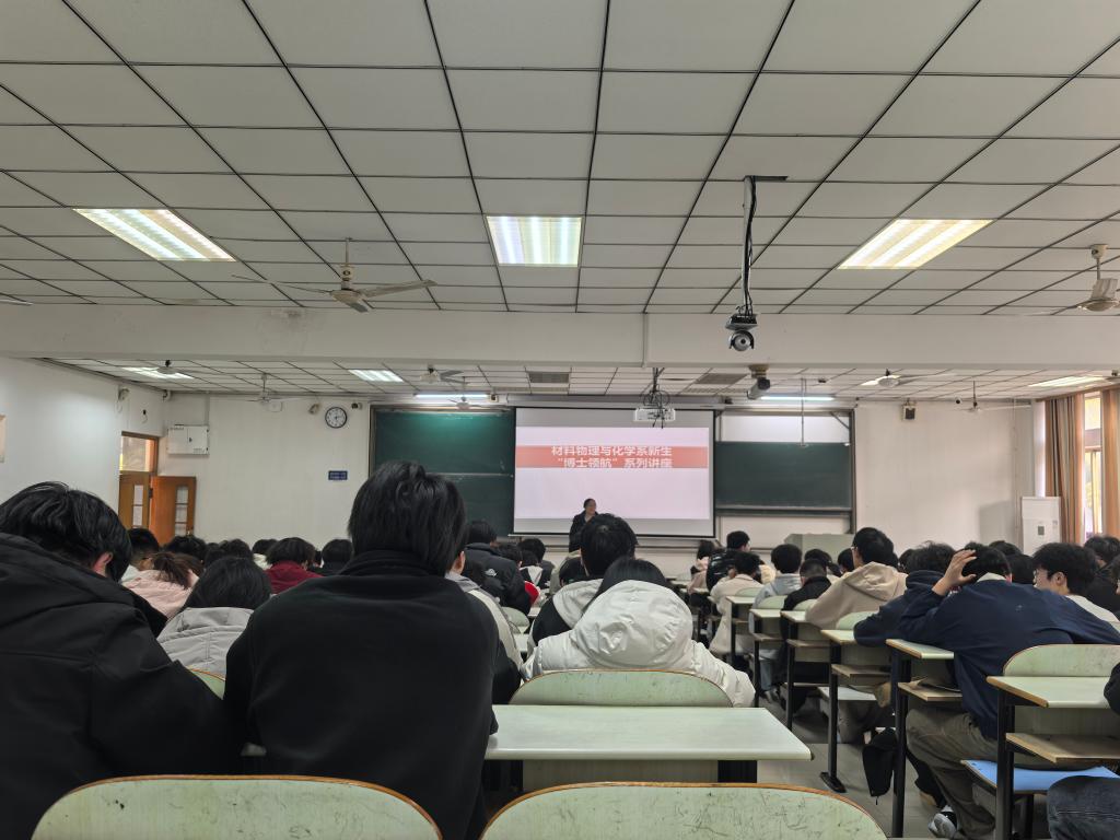 、氢能科学与工程、新能源材料与器件三个专业,开展“博士领航”系列论坛活动。材物系系主任马扬洲,班主任老师刘娟、汪冬红带队开启论坛第一讲,大一辅导员、相关专业学生参加会议。