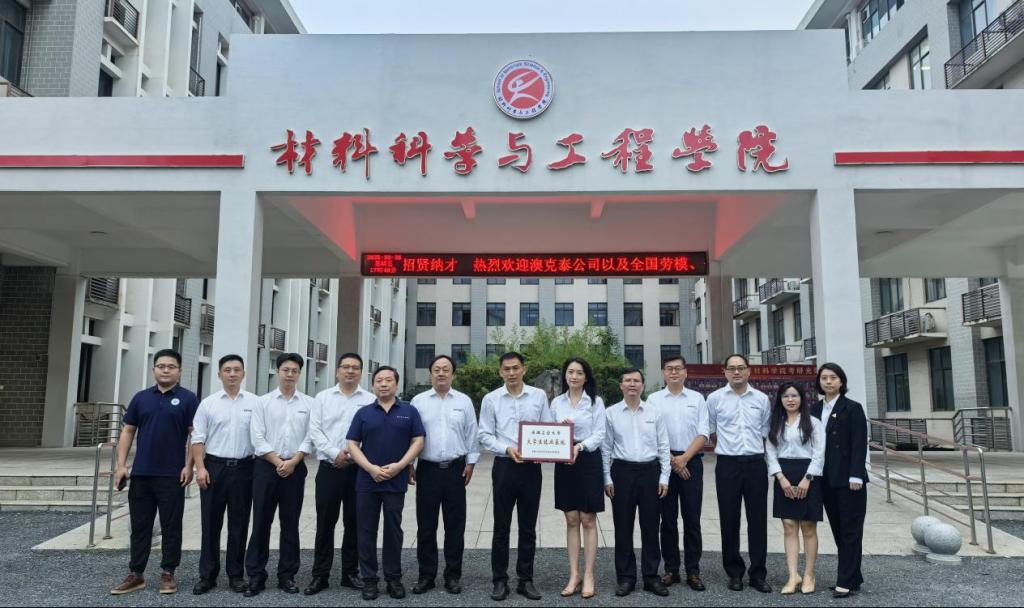 座谈会上,杨建对企业一行表示欢迎,介绍了学院在发展历程、学科建设、科学研究及人才培养等方面的成果,并感谢校友邱联昌对母校发展的关心。汪盛颜通报了学院2025届毕业生升学就业概况。邱联昌详细介绍了澳克泰公司的业务领域、人才需求及发展愿景,并表达了反哺母校、深化合作的意愿。双方就协同育人达成共识,现场签订了人才培养与就业基地建设协议,授予大学生就业基地牌匾,标志着校企合作迈入实质性阶段。